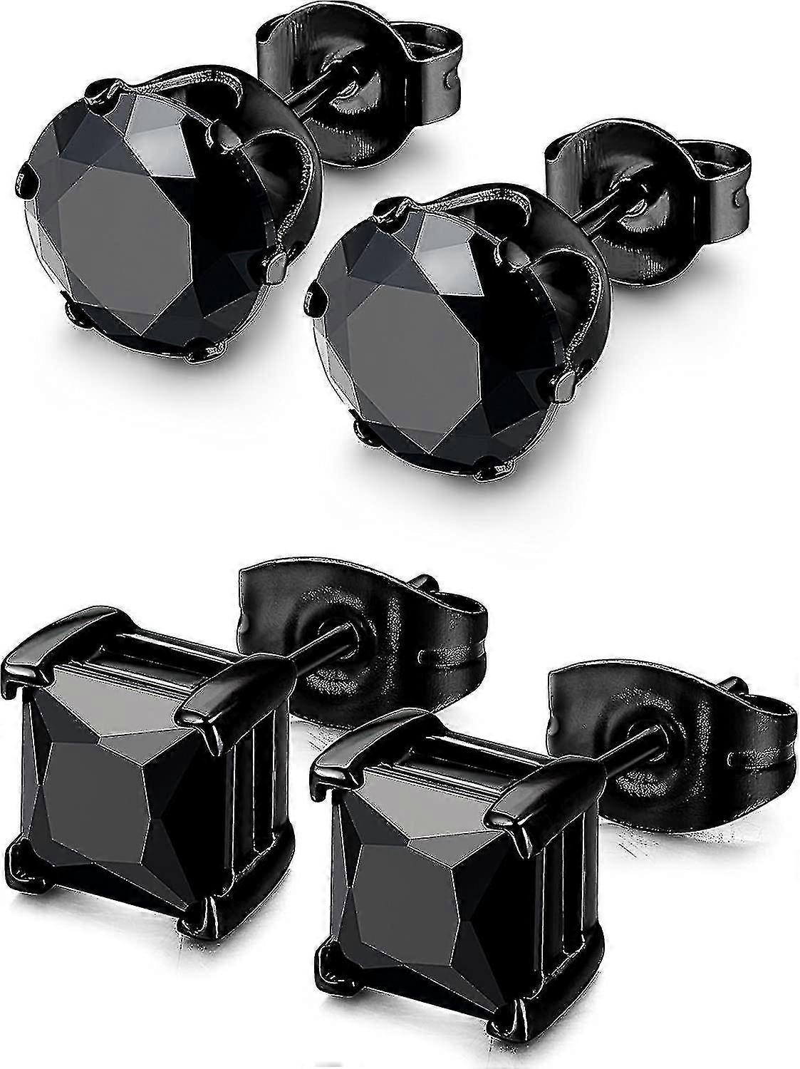 2 Pairs Stainless Steel Mens Womens Cz Stud Earrings Pierced Earrings Black 20g 3-8mm