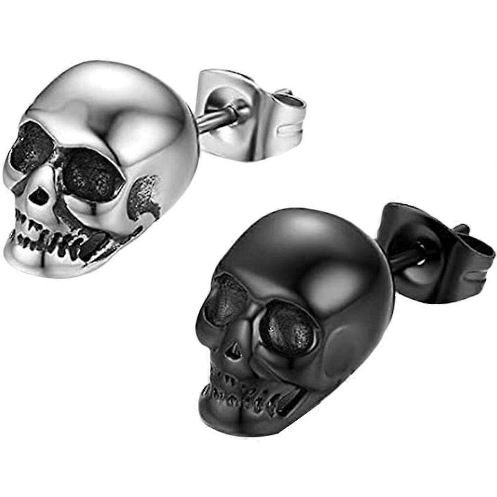 2 Pairs Punk Skull Head Earrings Ear Piercing Earrings Halloween Stud Earrings Jewelry