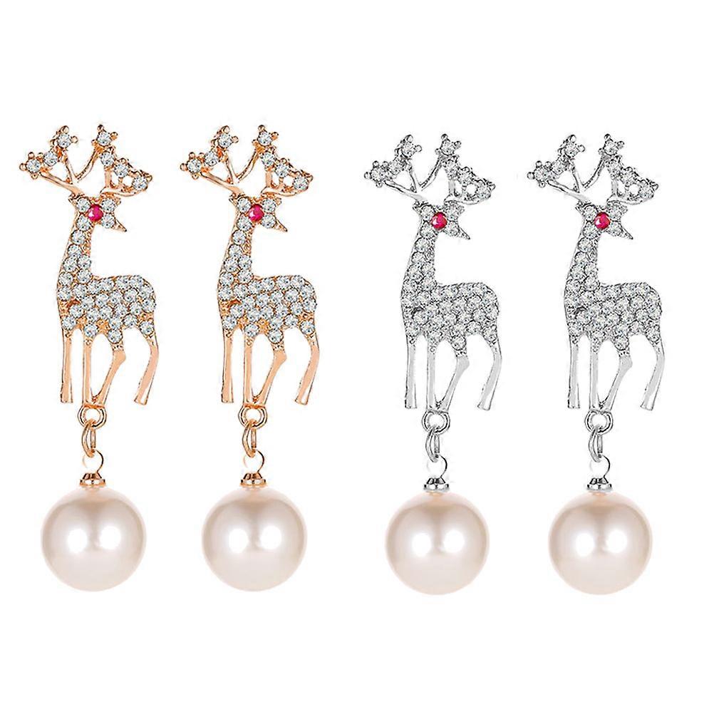 2 Pairs Pearl Studs Earrings Women Party Ear Decor Reindeer Earrings Reindeer Pearl Earrings Elk Earrings Creative Ear Ornament