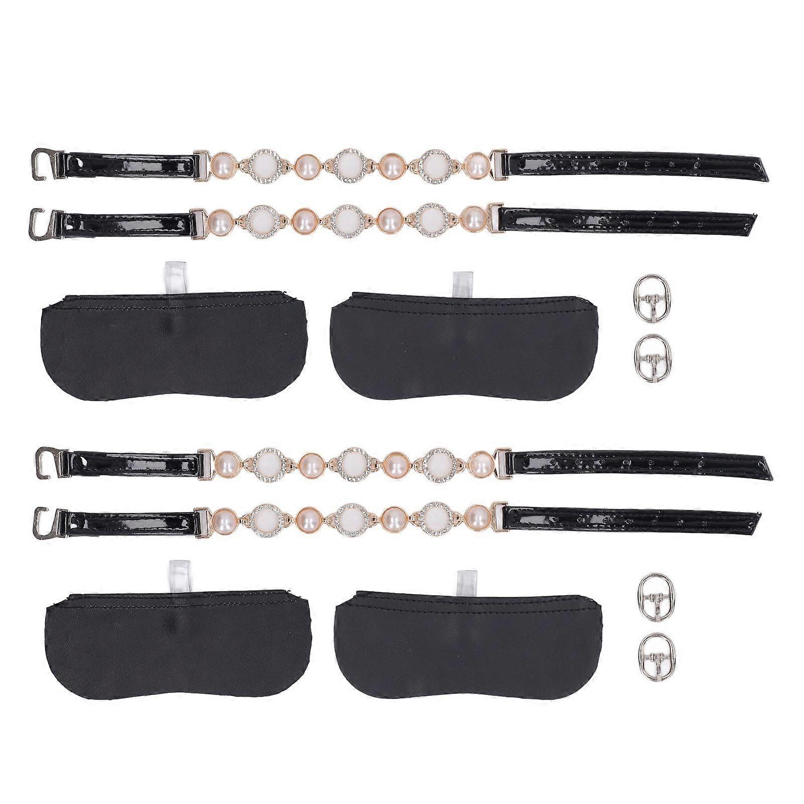 2 Pairs Faux Pearl Glossy Black High Heeled Shoes Straps Rhinestone Ankle Straps for Holding Loose High HeelsYMMR)