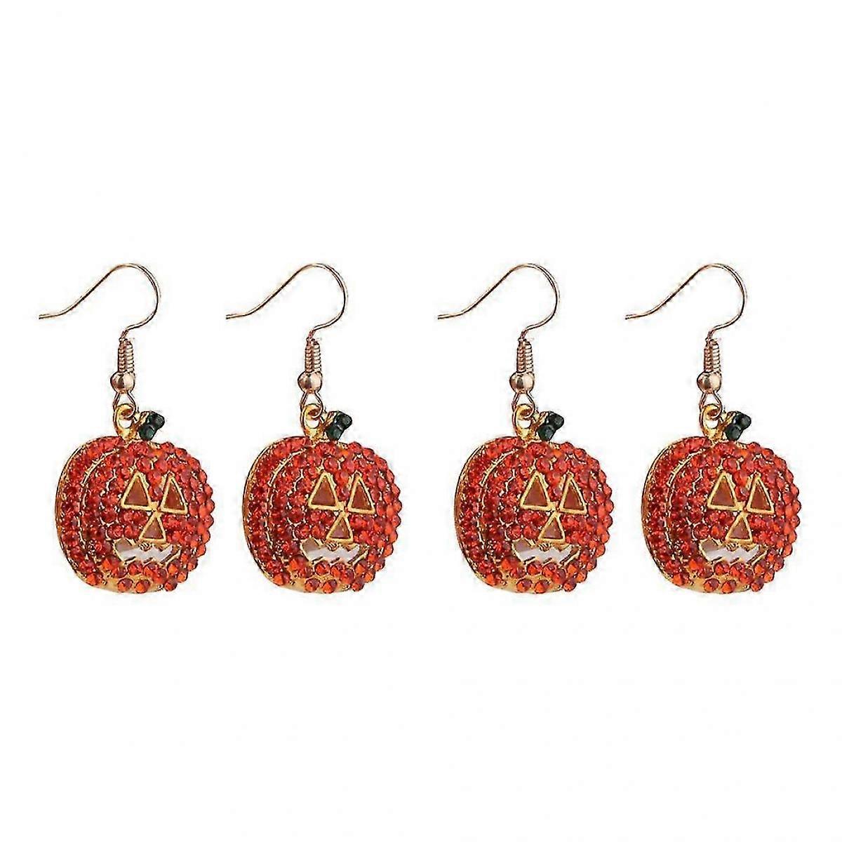 2 Pairs Full Paved Crystal Rhinestone Halloween Pumpkin Shape Creepy Face Dangle Earring