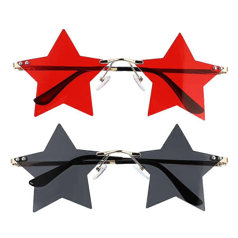 2 Pairs Womens Black Sunglasses Star Shaped Glasses Rimless Eyeglasses Outdoor Glasses