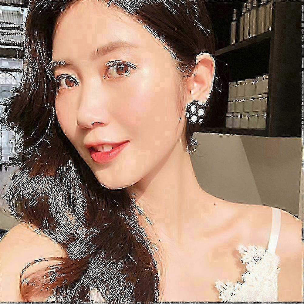 2 Pairs Geometric Earrings Fashion Black and White Polka Dot Earrings Simple Earbobs Round Circle Jewelry for Women Lady Girl