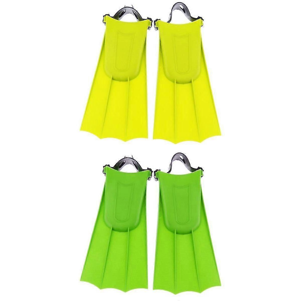 2 Pairs Adjustable Flippers Swimming Diving Training Tool Yellow+Green
