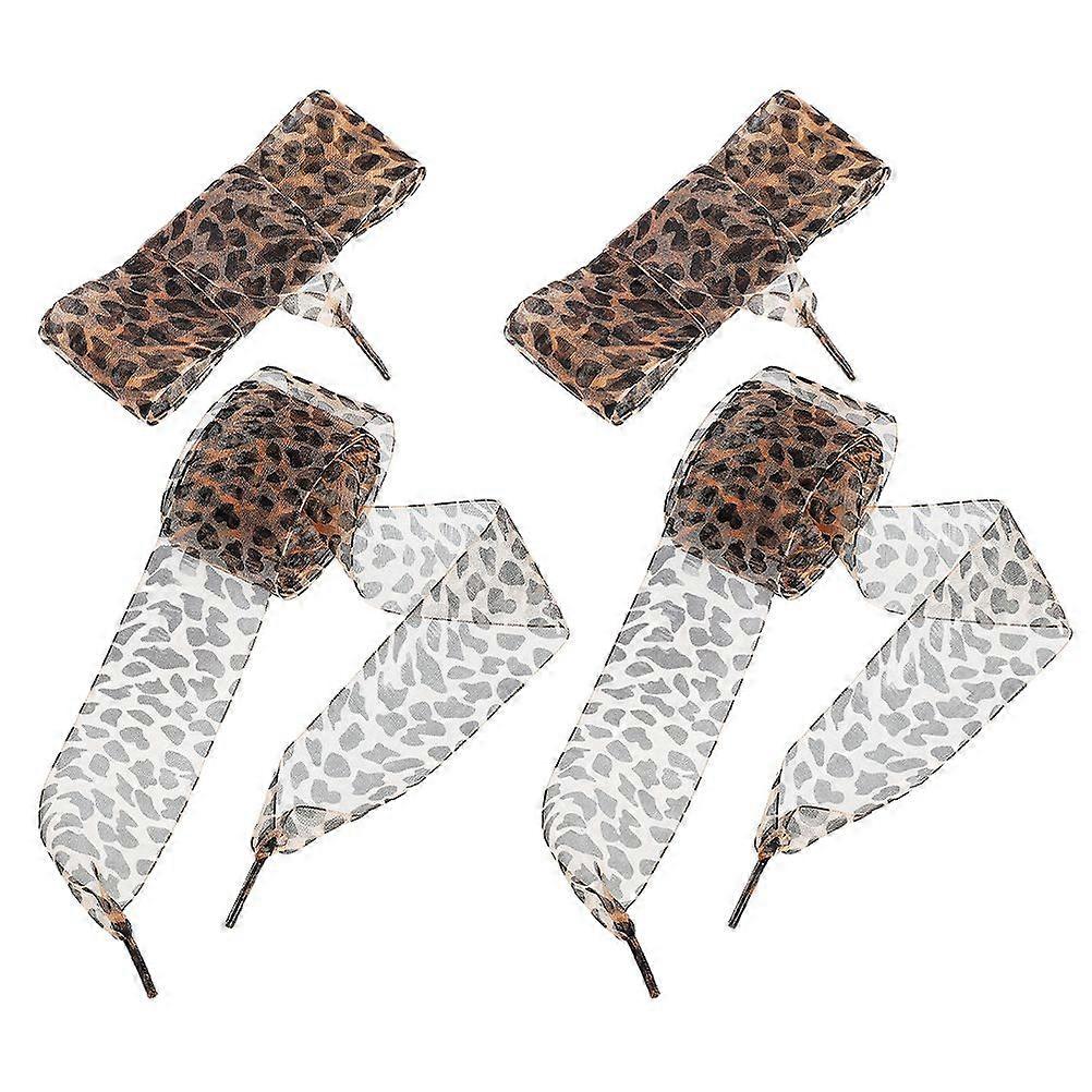 2 Pairs 4CM Wide Leopard Shoe Laces for Sneakers Animal Print Flat Shoelaces for Women and Men Shoe Laces for Sports Shoes