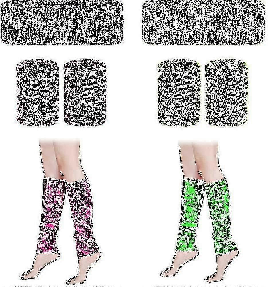 2 Pairs 80s Neon Knit Leg Warmers Knee High Socks 2 Pieces Running Headband