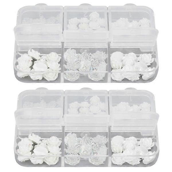 2 Box Nail Art Decorations Delicate Compact White Rose Camellia Nail Art Rhinestones for Girls