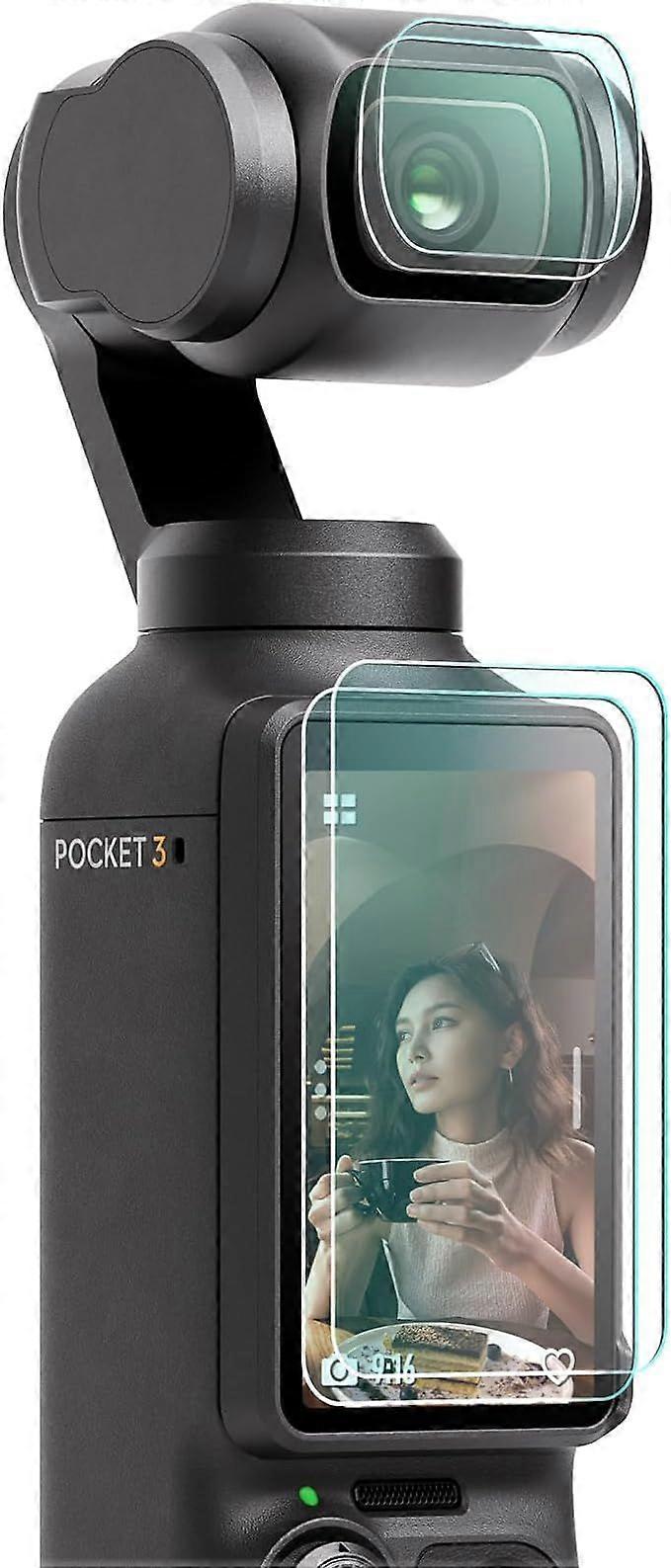 2 Lens Protection 2 Screen Protector for DJI Osmo Pocket 3, Made of Tempered Glass, Hardness 9H, Touch Sensitive, Complete Screen Protection