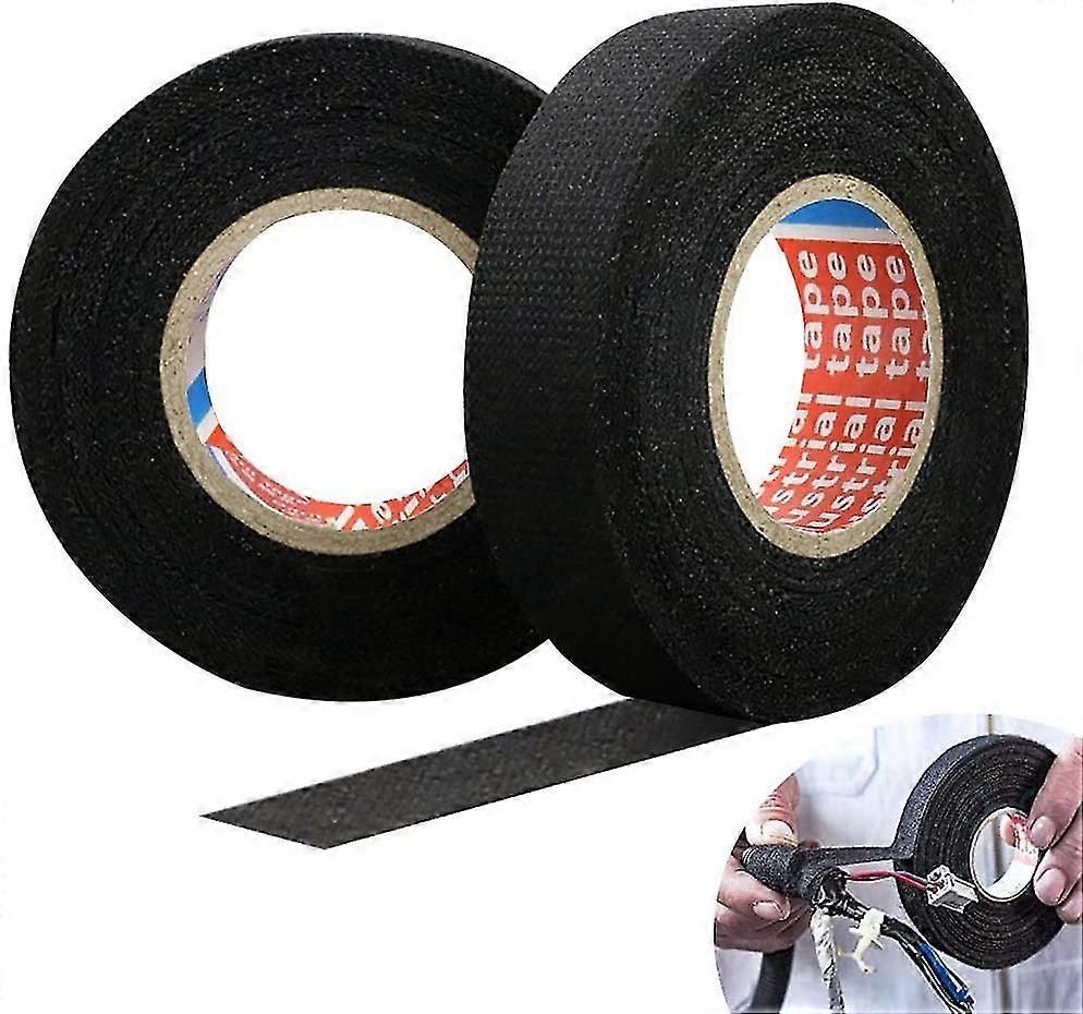 2 Rolls Fabric Duct Tape Black Insulating Duct Tape 15m Cloth Car Tape 19mm/25mm Cable Duct Tape Temperature Resistance For