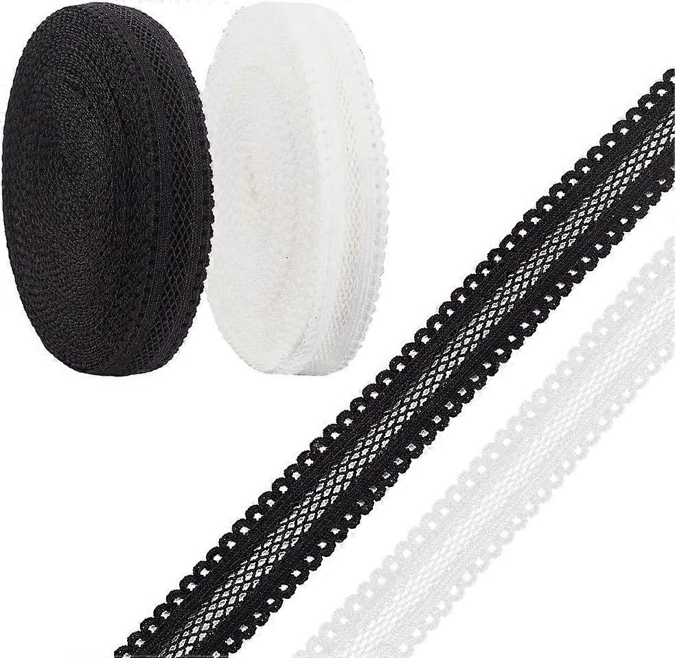 2 Roll 21 Yards Polyester Lace Trim 5/8 inch Vintage Lace Ribbon Black and White Lace Fabric Trim for Wedding Invitation Cards Decorating Sewing Hair