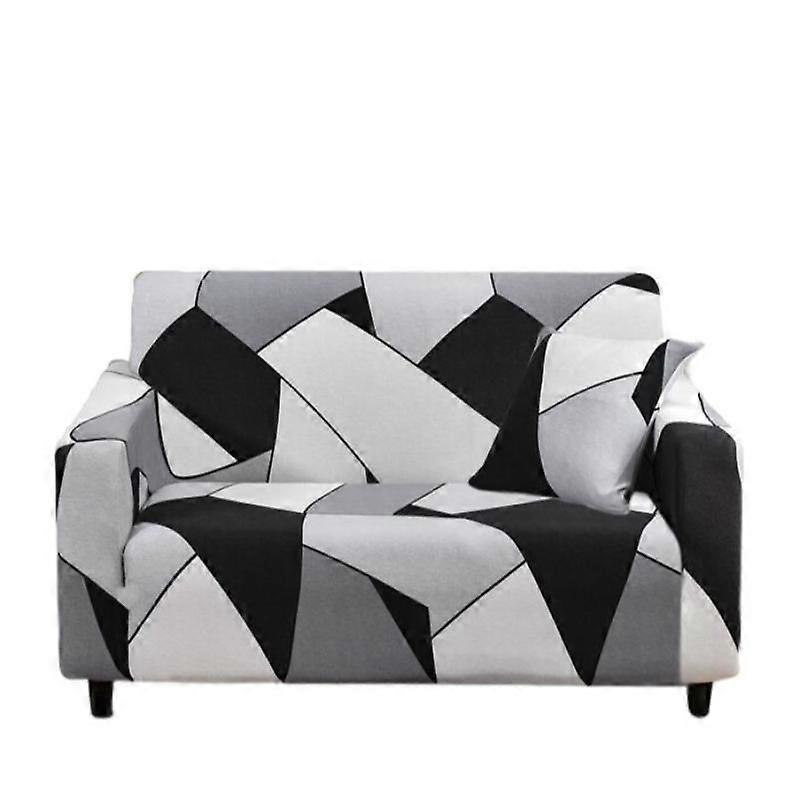 2 Seater Sofa Cover Black White Geometric Style Elastic Stretchable Slipcover Slipcovers