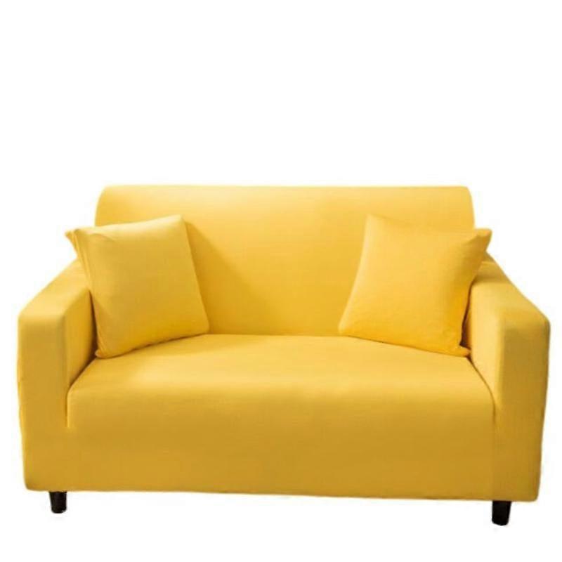 2 Seater Sofa Cover Plain Yellow Elastic Stretchable Slipcover For Living Room Slipcovers