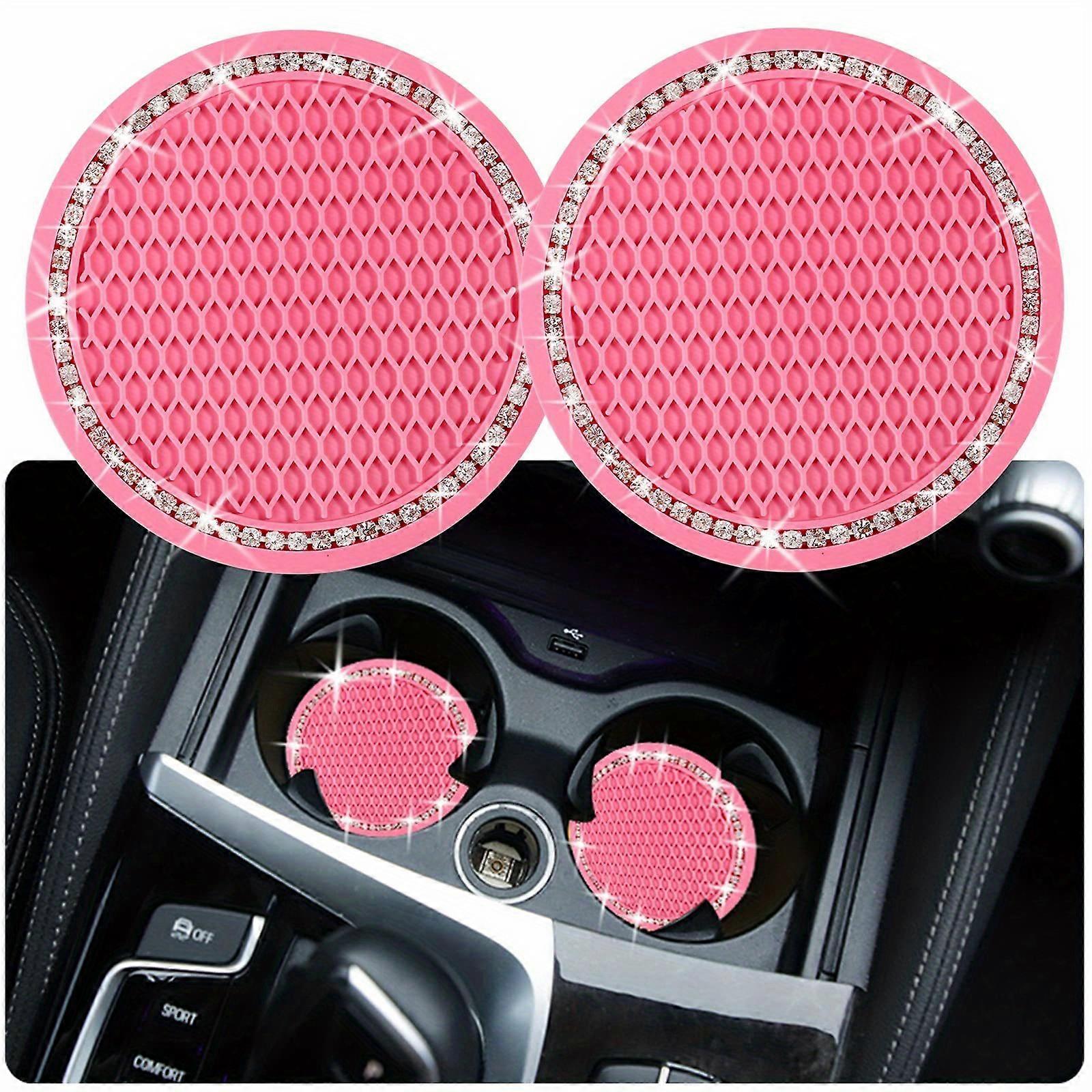 2pcs, Bling Car Cup Coasters, 2.75 Inch Auto Car Cup Holder Insert Coasters Silicone Anti-Slip Crystal Rhinestone Drink Car Cup Mat, Universal Vehicle