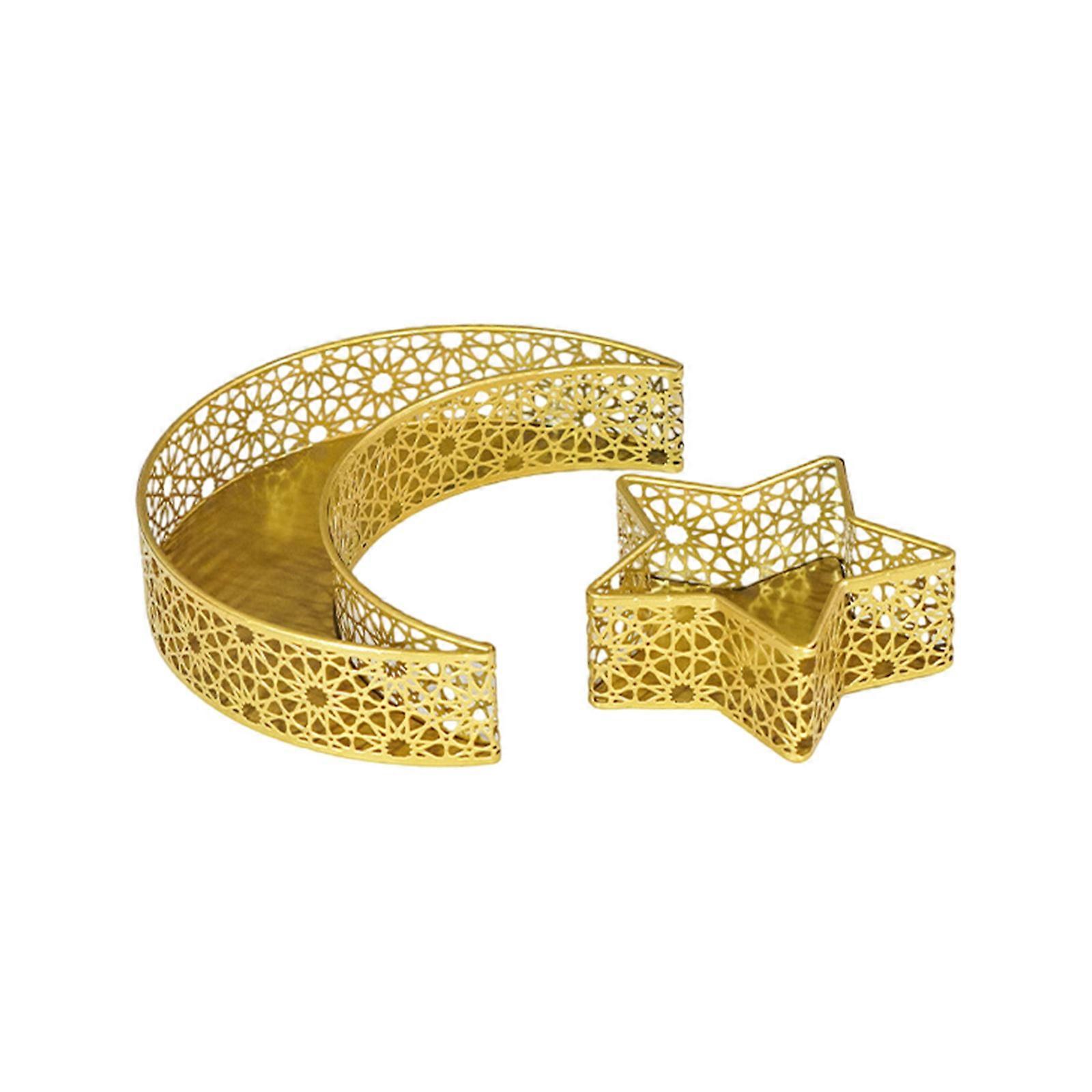 2Pcs Iron Art Fruit Bowls Display Ornaments Unique Ramadans Themed Crescents Moon Shape Iron Fruit Platters Decors