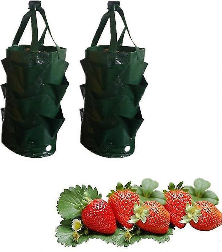 2 Pcs Strawberry Planting Bag (green), Plants Growing Bag, Garden Hanging Strawberry Grow Bags With 8 Holes, For Strawberry, Potato, Tomato, Flower Ve