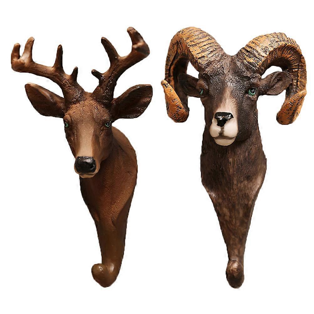 2pcs Vintage Resin Animal Hooks, & Ram Wall Hangers for Room Organization, Neoclassical Style Home Decor
