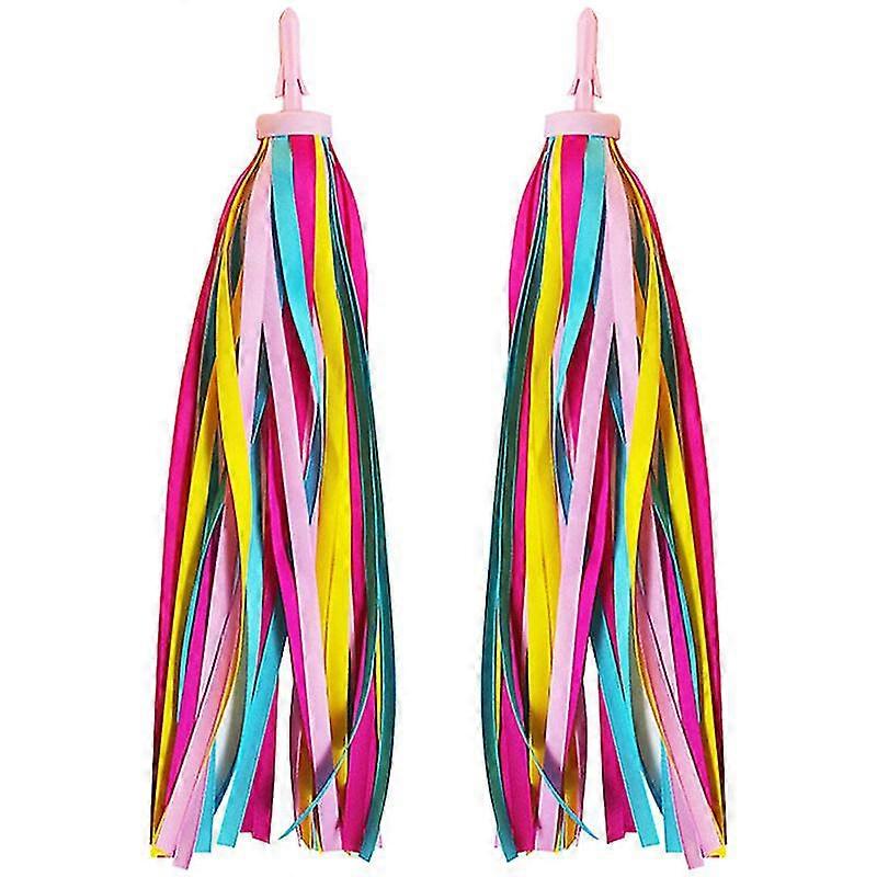 2 Pcs Kids Rainbow Bicycle Streamers For Girls Boys Children Tassel Scooter Bnder Velo Handlebar Streamers Bnder, Color3