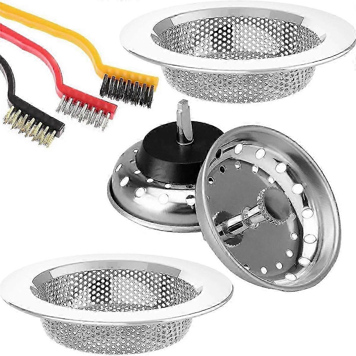 Features: Strainer/Stopper - Work as a kitchen drain strainer and sink stopper. Stop food and debris into the sink to avoid clogging. 36 holes design for draining water easily and fast. Stainless-Steel material-allows durable usage. Fit for all standard US 3 1/2-inch kitchen sink drains. Specifications: type: A-2 x Kitchen Sink Strainer and Stopper Combo+3 x Kitchen Cleaning Brushes+2 x Stainess Steel Sink Strainer Center Hole Style: Narrow Rectangular tip: Some accessories are sent randomly, Cannot be chosen the specific accessories.and will not affect use. Note: 1. The sink drain MUST have a NARROW HOLE in the center. 2. Please double-check the size/diameter of sink drain before purchasing the product. Material: Stainless steel colour: Silver Package Contents: 2 x Kitchen Sink Strainer and Stopper Combo 3 x Kitchen Cleaning Brushes 2 x Stainess Steel Sink Strainer Only the above package content, other products are not included. Note: Light reflection and different displays may cause the color of the item in the picture a little different from the real thing. The measurement allowed error is +/- 1-3cm.