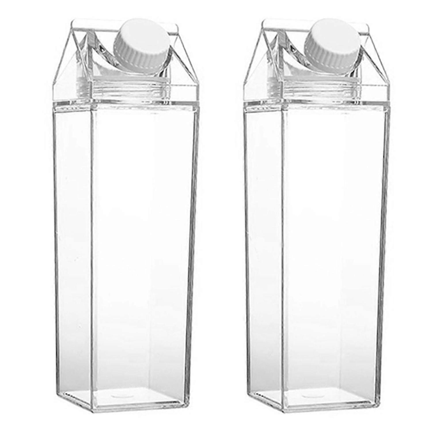 2 Pcs Clear Milk Water Bottle Portable Plastic Cup Milk Carton Water Bottle Outdoor Camping Drinkin