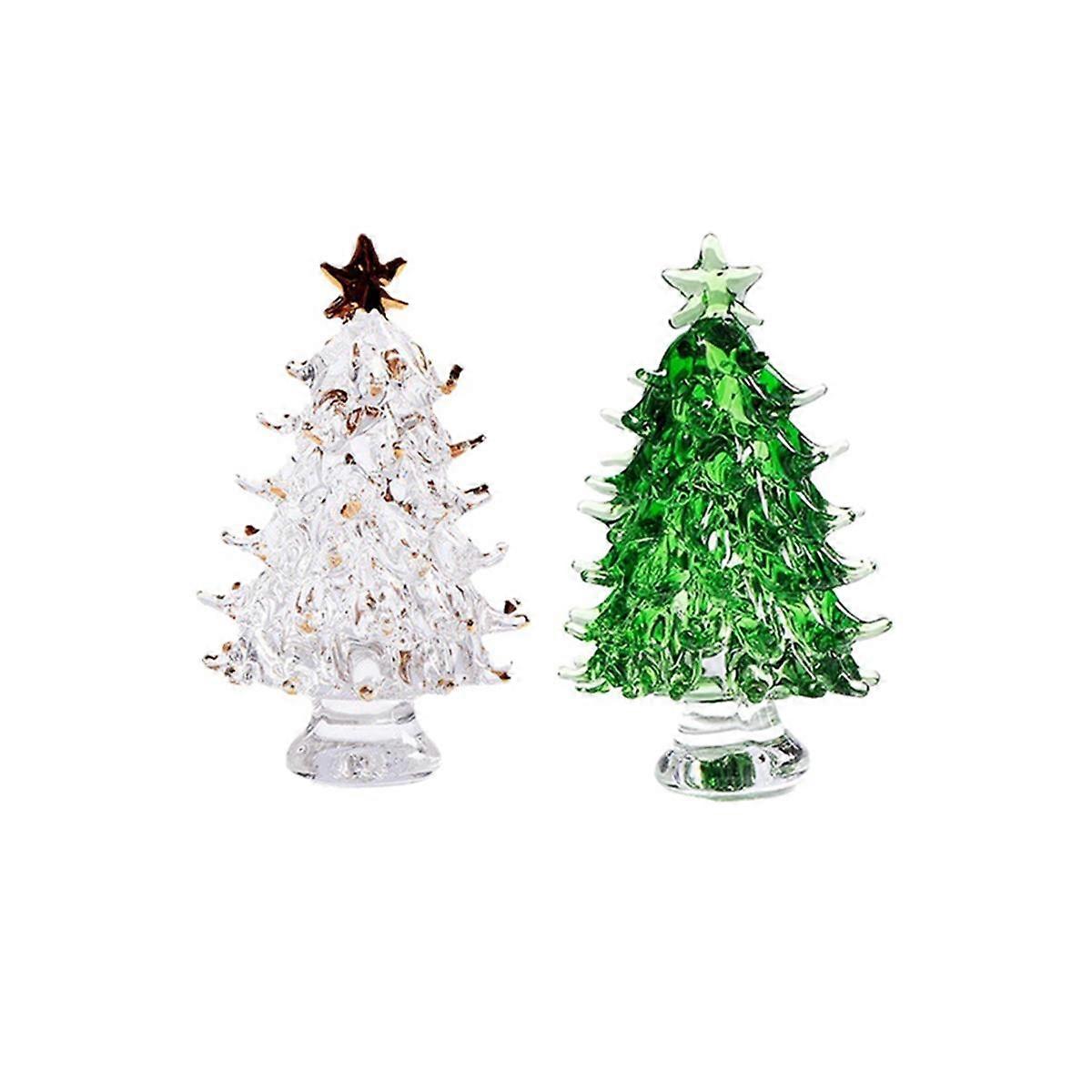 2Pcs Crystal Christmas Trees Fireplace Mantel Decor Desk Topper Artificial Plants Crystal Glass Tre
