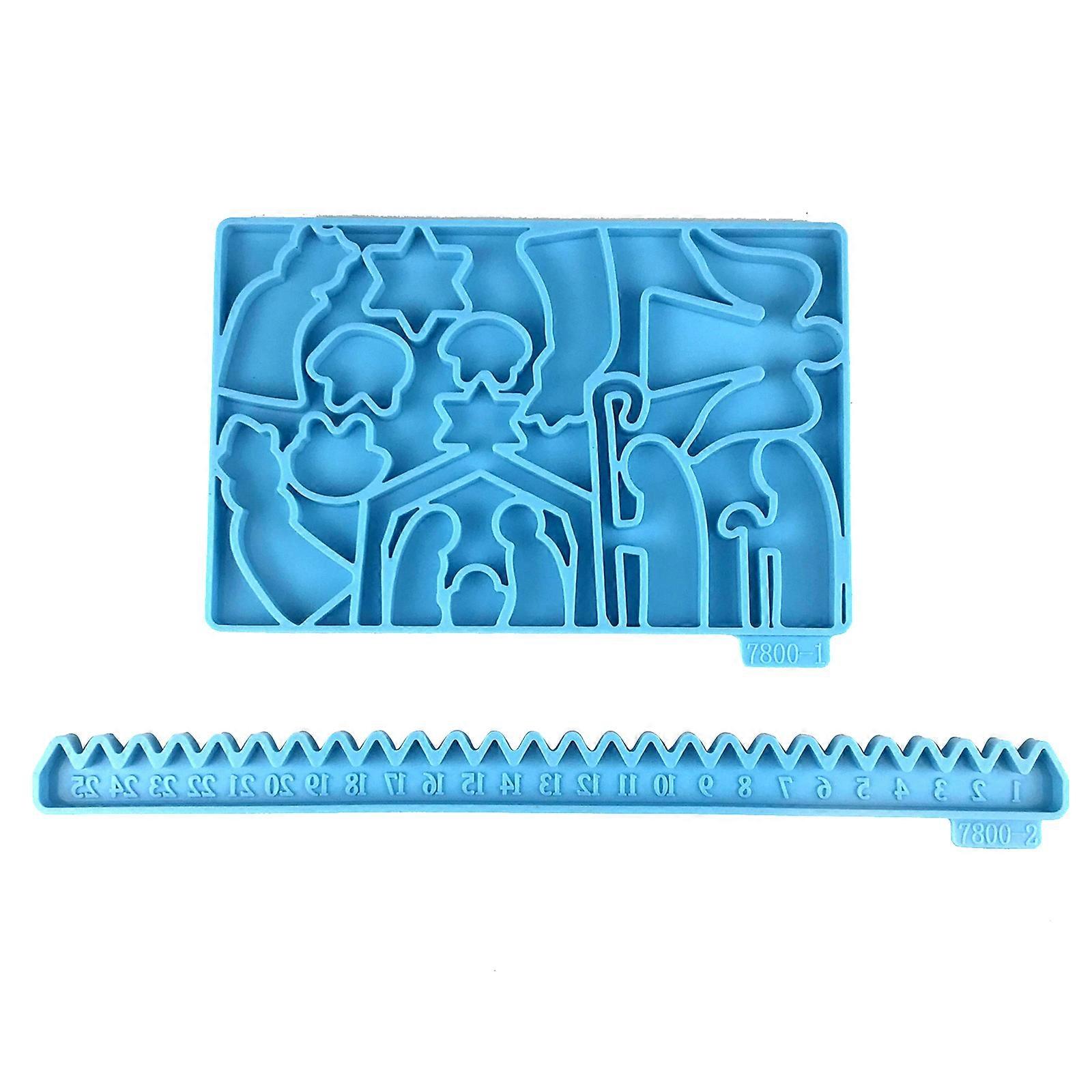 2Pcs Christmas Advent Calendar Silicone Mold Christmas Resin Mold Desktop Christmas Ornaments Mold for Home Party Decor Blue