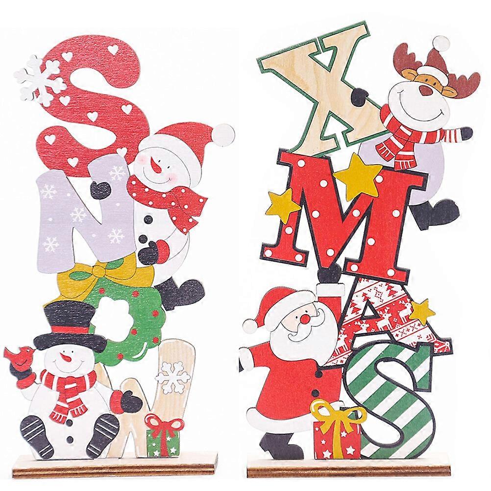 2Pcs Christmas Wood Sign Tabletop Decoration Xmas Desktop Sign Plaque Decorative Table Sign