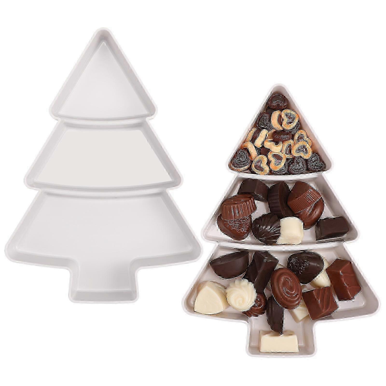 2Pcs Christmas Tree Shaped Plastic Fruit Plates Candy Snack Trays 26x18.5x3cm White