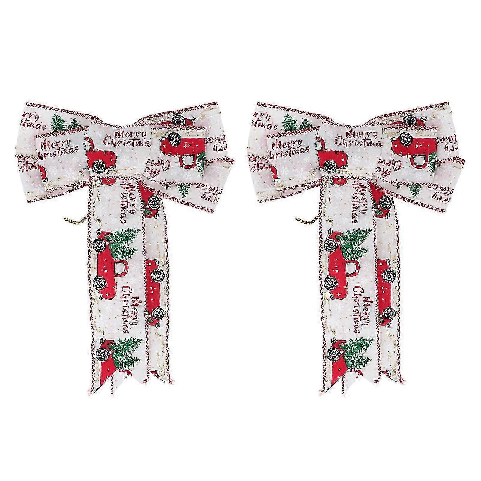2 Pcs Christmas Tree Bow Topper Bright Color Handcrafted Xmas Decoration for Wreath Door Wall Holiday Party Winter