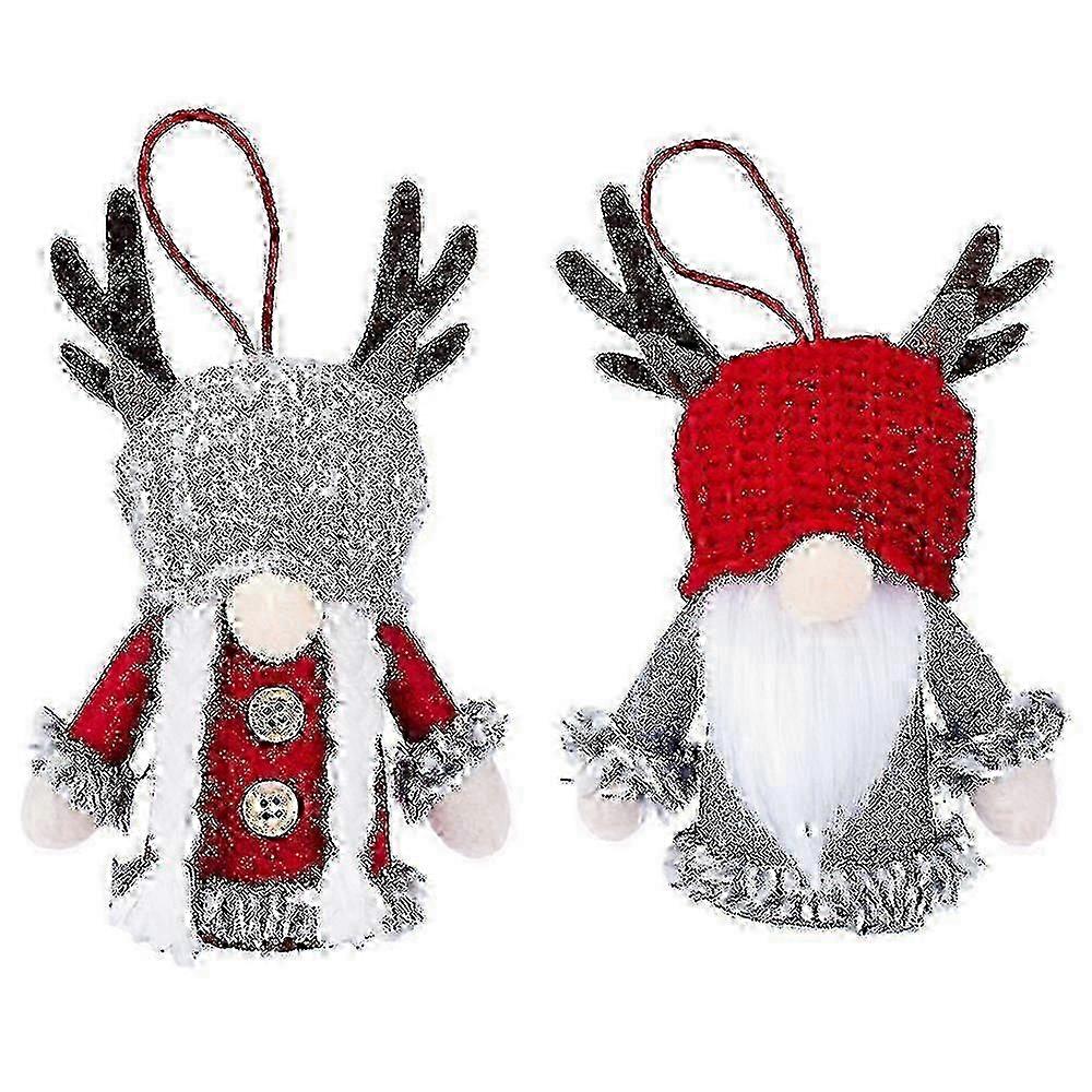 For 2 Pcs Christmas Decoration Items Knitted Antler Hat With Lamp Antler Pendant Doll Small Tree Pendant