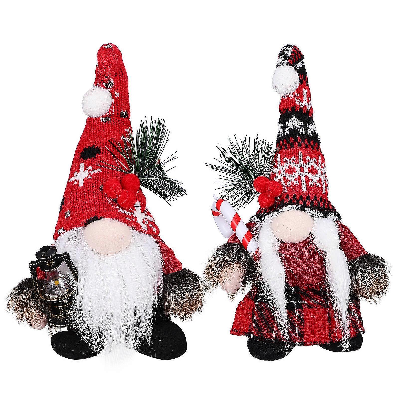 2pcs Christmas Gnome Figurines Stuffed Dwarf Ornaments Holiday Tabletop Decor