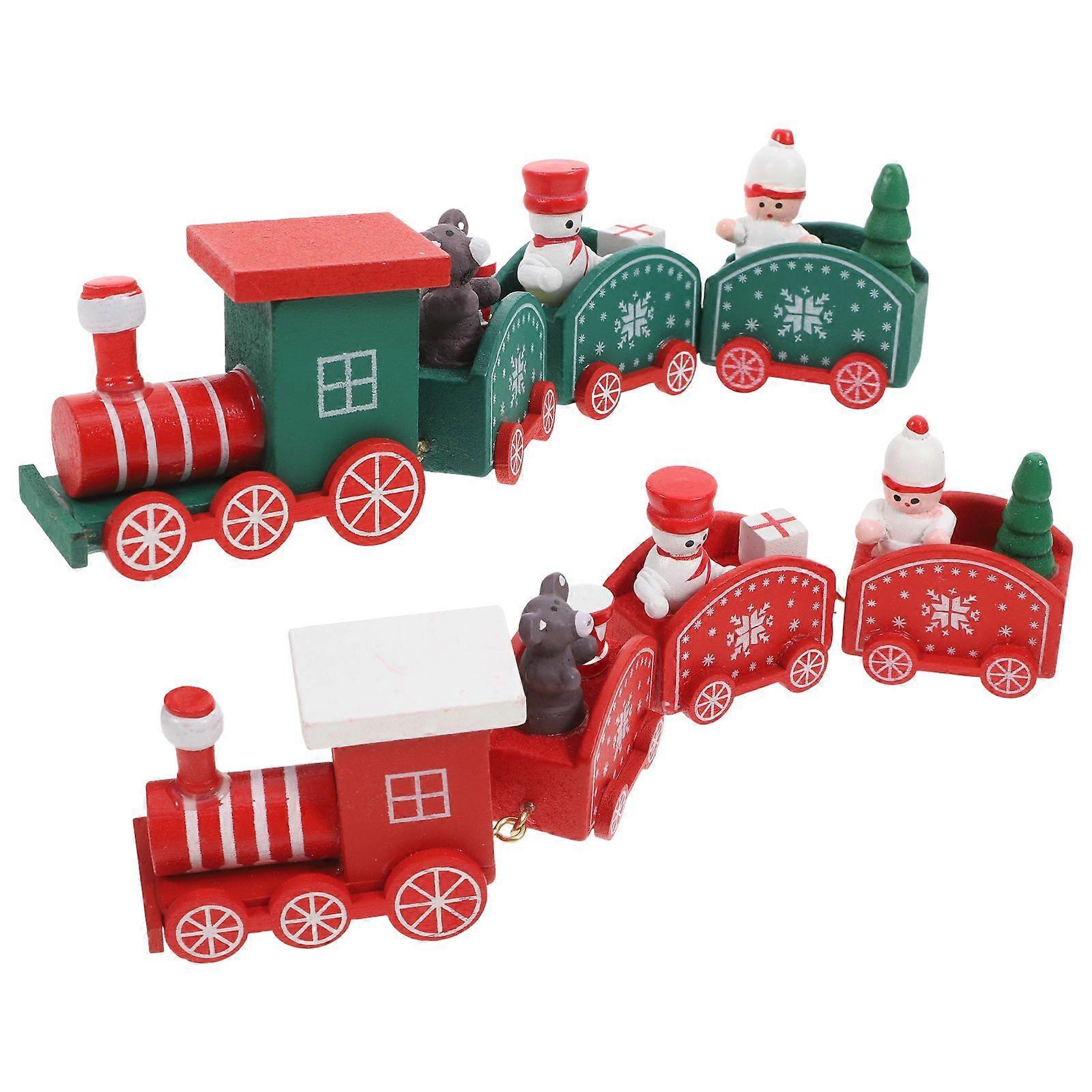 2Pcs Christmas Wooden Trains Ornaments Creative Exquisite Xmas Adornment Home Cabinet Decoration(Random Color)