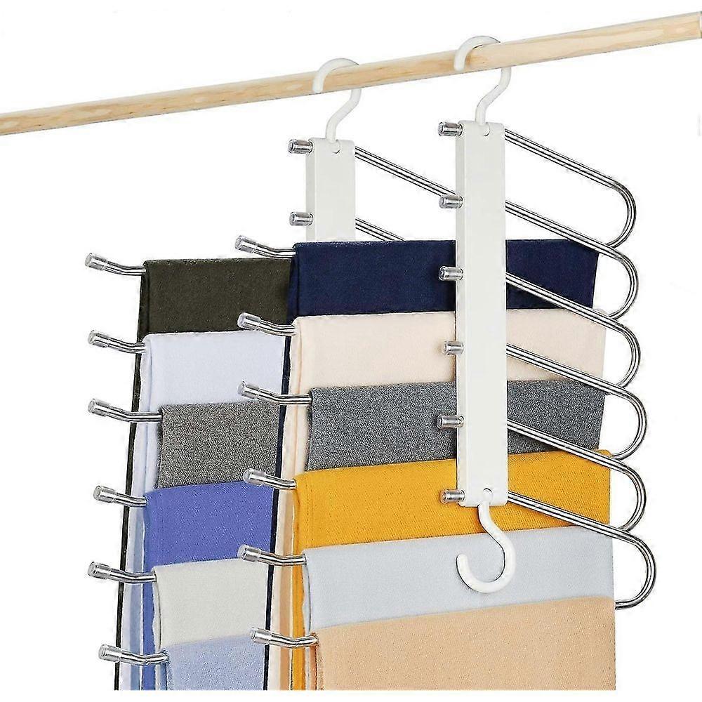 2 Pcs Coat Hangers,6 in 1 Pants Hanger Rack for Jeans Clothes Scarf Towels Wardrobe Closet Organizer