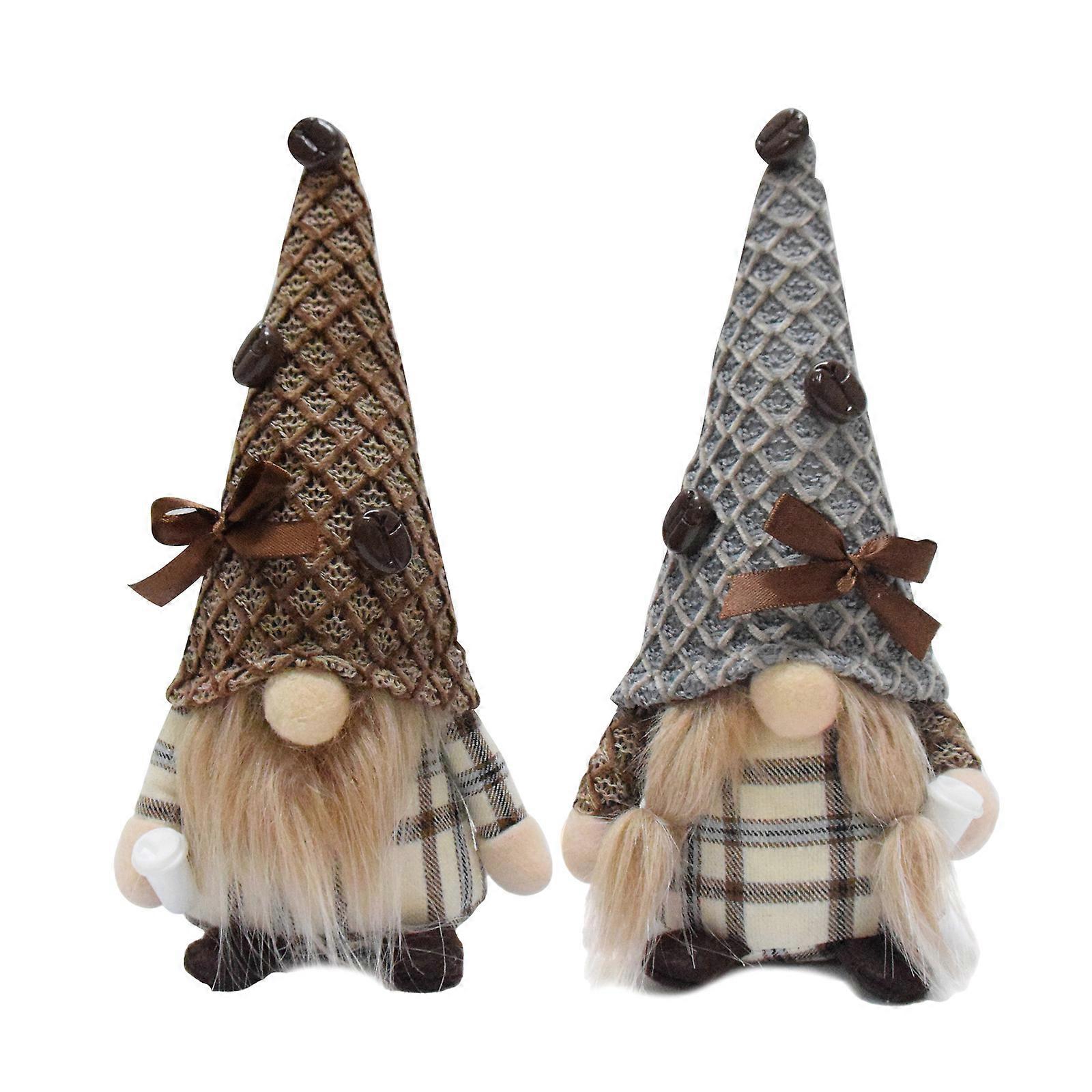 2Pcs Coffee Lover Handmade Mr and Mrs Gnomes Plush Decors Stuffed Swedish Tomte Dolls for Tiered Tray Display Decors