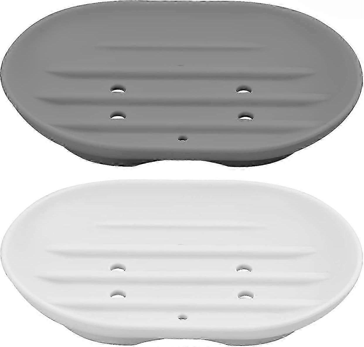 2 Pcs Silicone Soap Dish, Anti-Slip Self-Draining Soap Holder for Shower Bathroom Kitchen