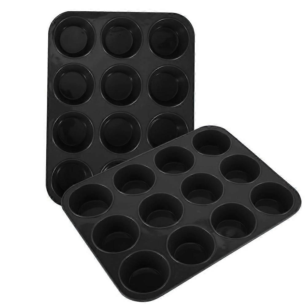 2pcs Silicone muffin tin for 12 muffins non-stick coated, Suitable for cupcakes, brownies, cakes, pudding blue ect