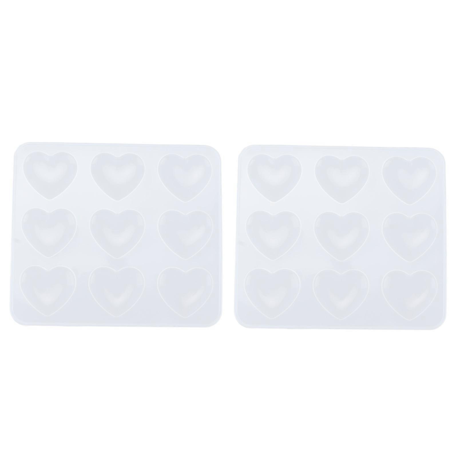 2Pcs Silicone Molds 9 Cavities Heart Shapes Epoxy Resin Drop Glue DIY Decoration Moulds