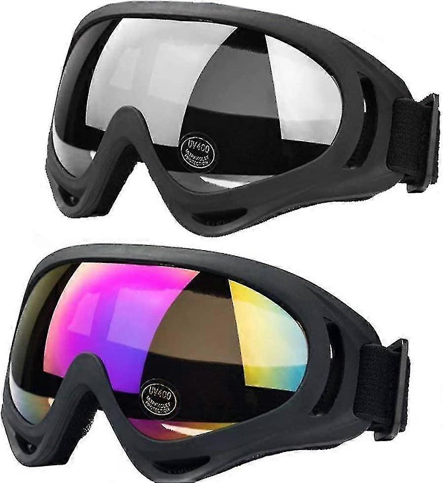 2pcs Ski Goggles,snowmobile Motorcycle Goggles Glasses Lens Anti-dust,uv Protection(color,transparent)