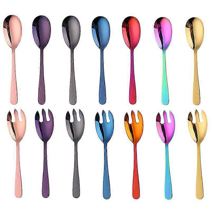2pcs Stainless Steel Salad Spoon &Fork Set Kitchen Restaurant Tools