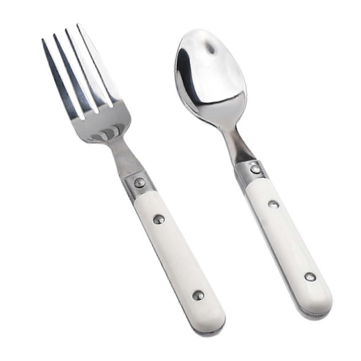 2Pcs Stainless Steel Fork and Spoon Handle for Safe and Easy to Clean Tableware for Independent Eating