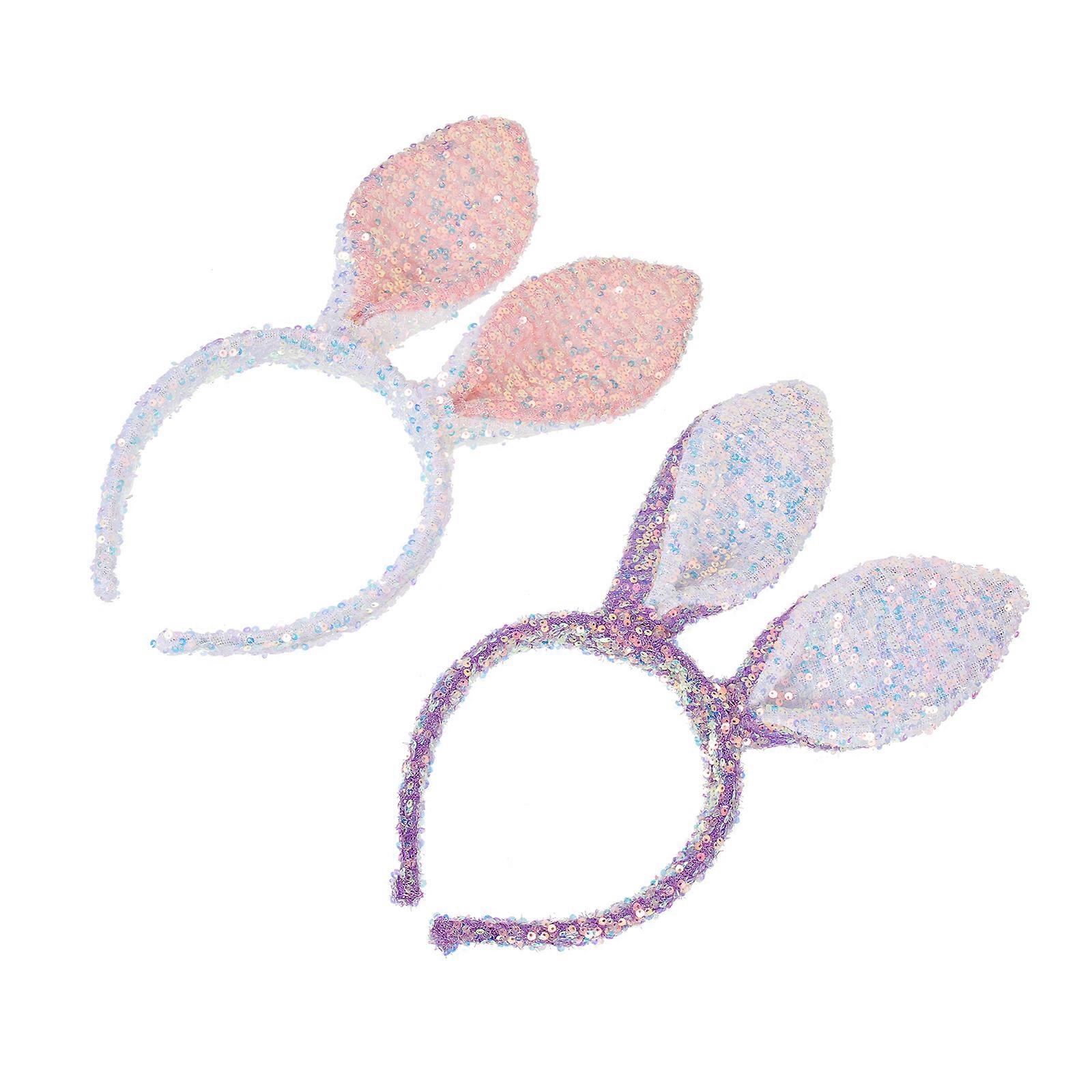 2pcs Sequin Bunny Ears Headband Lovely Easter Bunny Ears Hair Clasps for Party Favor