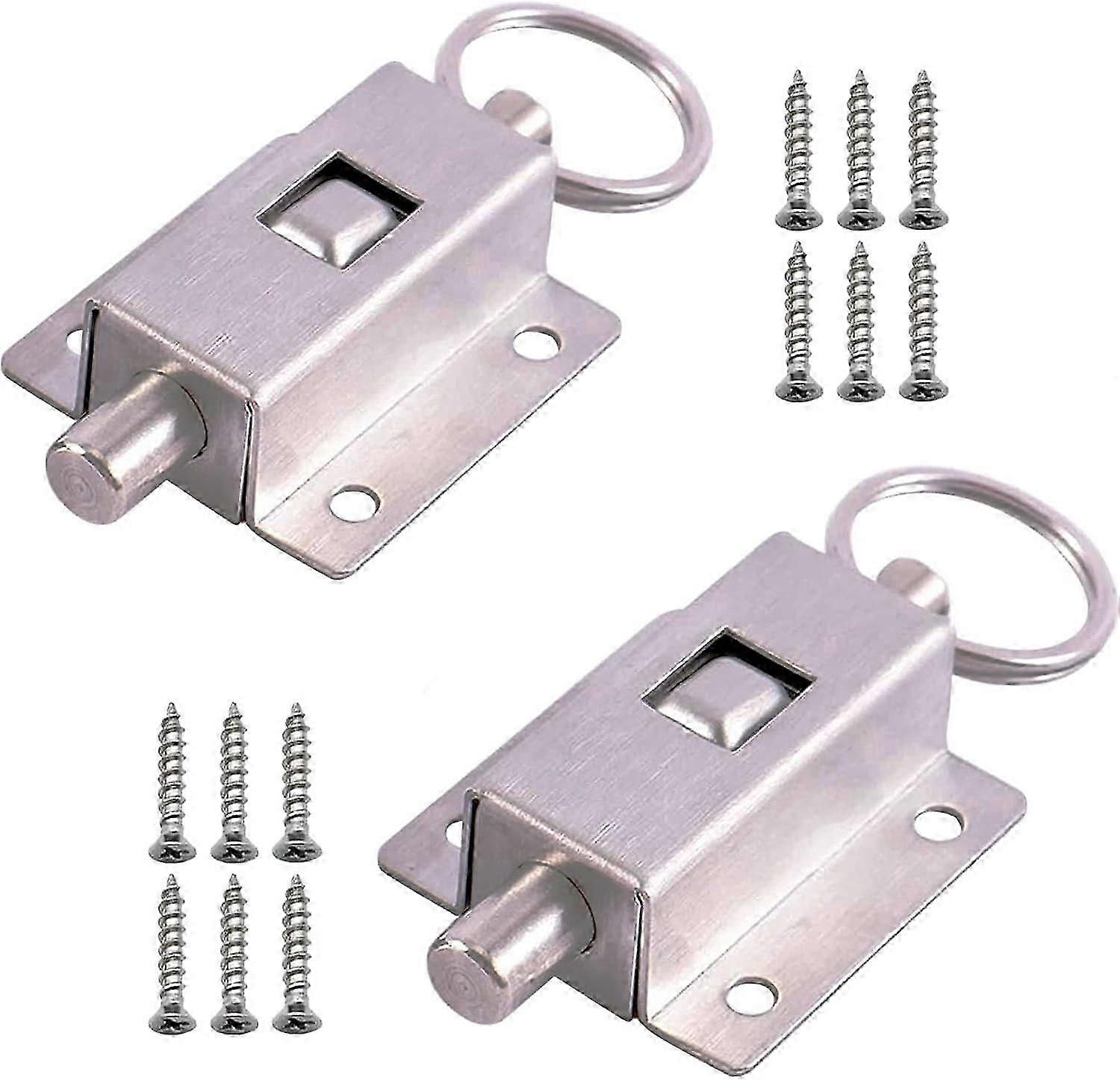 2 pcs Spring Bolts, Automatic Sliding Latch, Stainless Steel Sliding Spring Bolt, With Screws, for Bathroom Bedroom Toilet Door