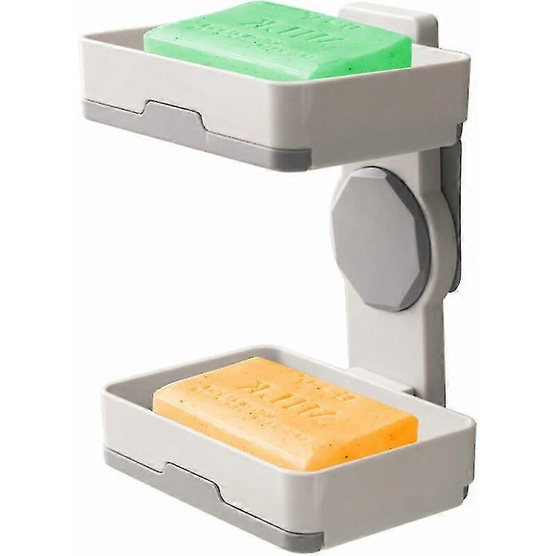 2 Pcs Self-draining Soap Dish, Rotating Plastic Soap Dish For Bathroom, No Drilling Soap Dishes With Strong Adhesive, For Countertop Shower, Kitchen
