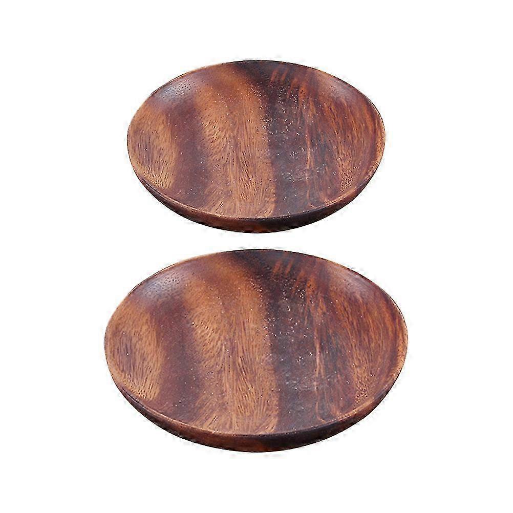 2Pcs Dark Wood Salad Plates, 15x15x2cm Multipurpose Tableware
