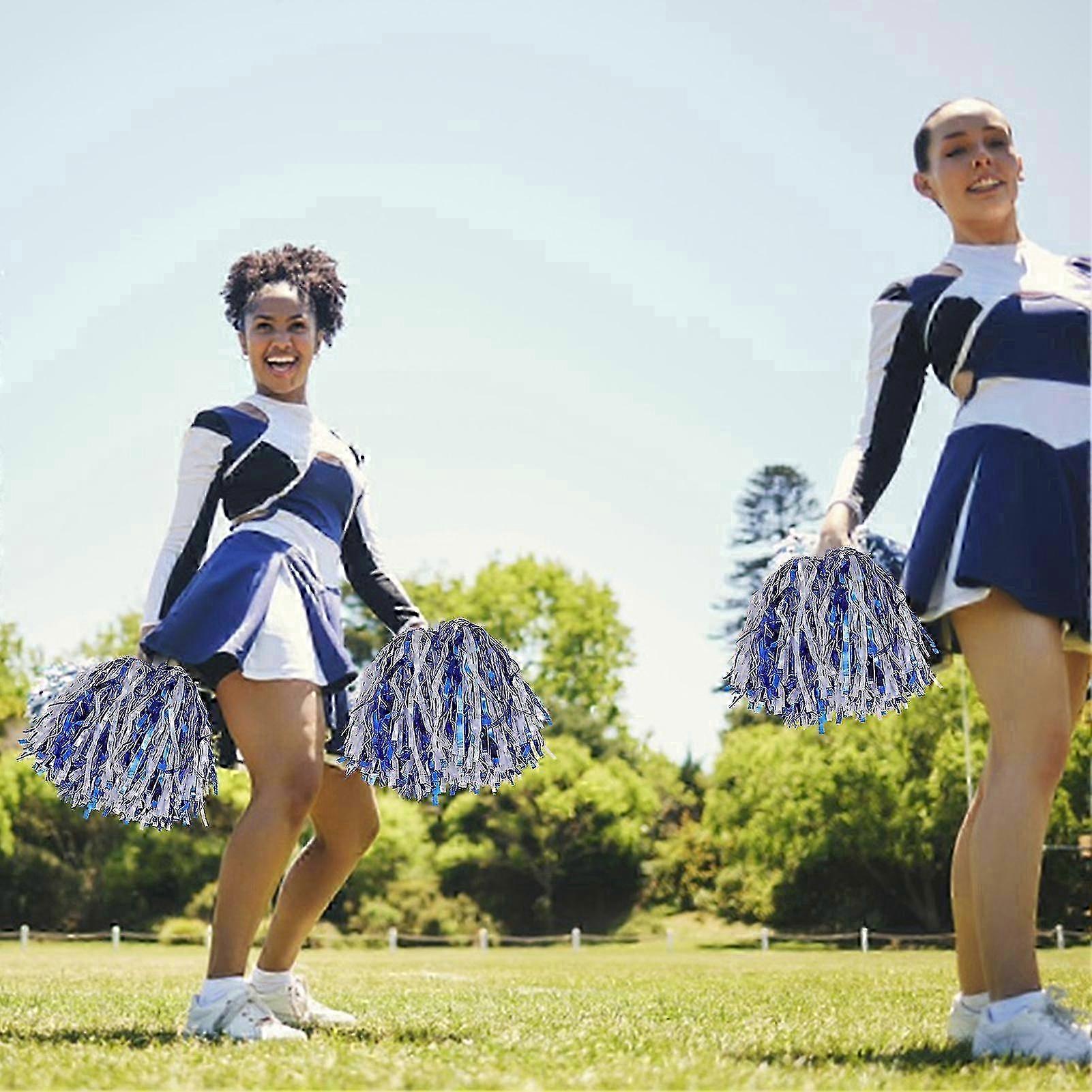 2Pcs Cheerleader Pom Poms Metallic Foil Cheerleader Pom Poms Hand Flowers with Handle for Sports Competitions Celebrations