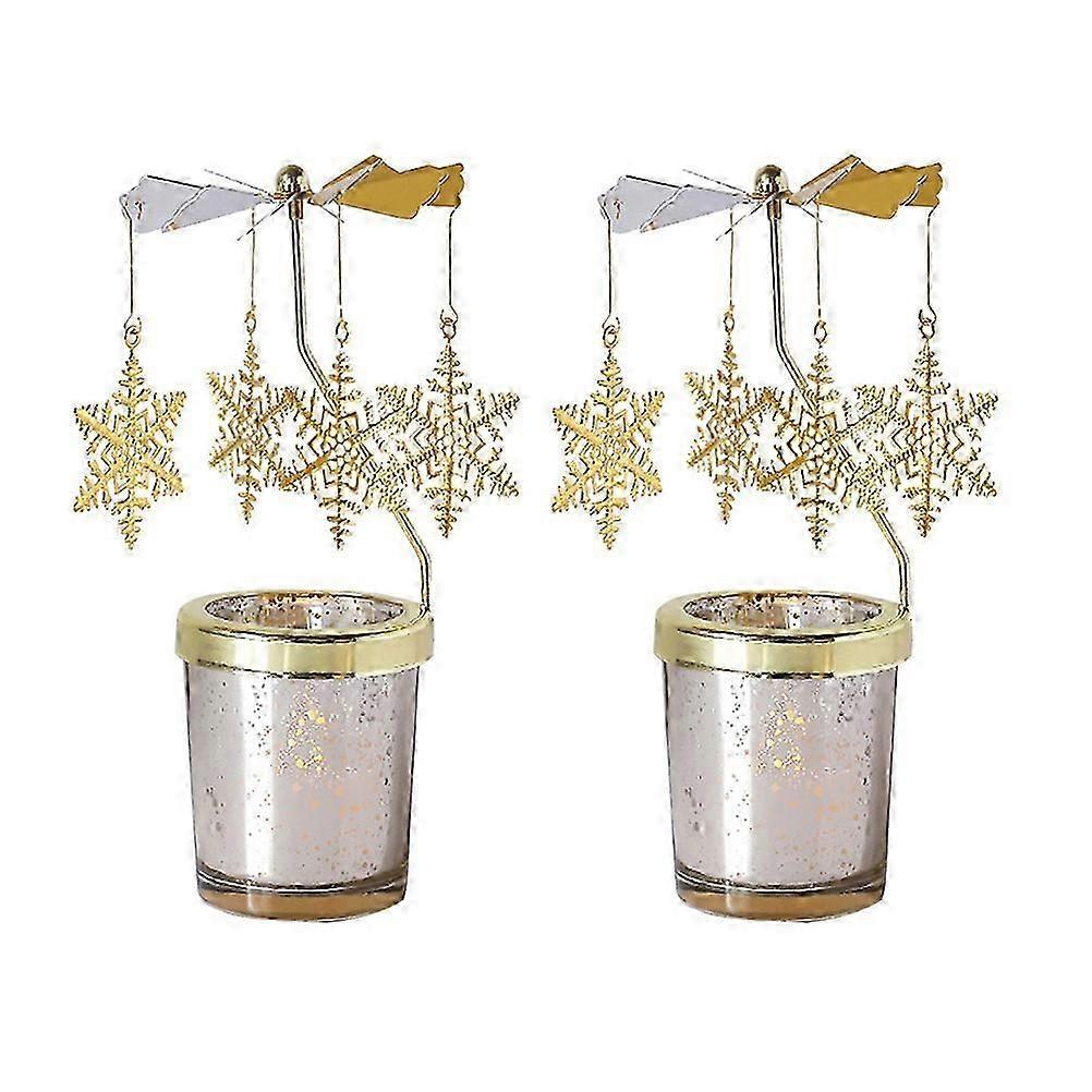 2 Pcs Tea Light Candle Holders Dinner Table Ornament Rotating Candlestick Votive Tea Light Holder Snowflake Tea Light Holder
