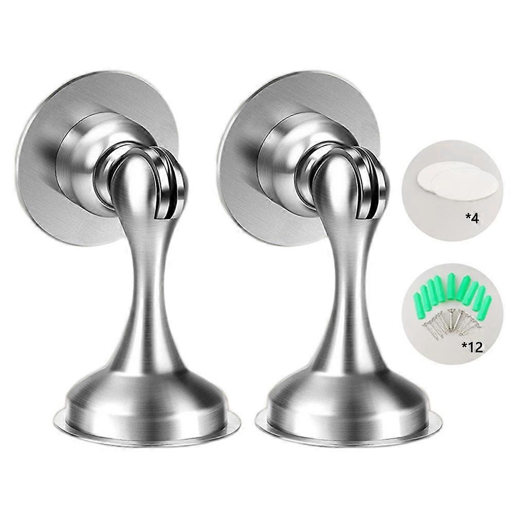 2Pcs Door Stopper Glass Wooden Doors Magnetic Stainless Steel Doorstop Shock Absorber - Brushed Stee