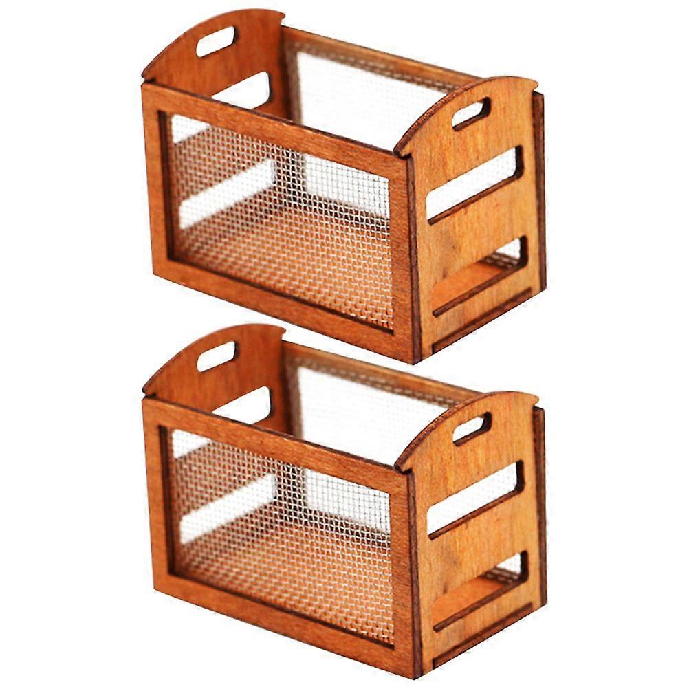 2Pcs Doll House Basket Ornaments Wooden Miniature Basket Layout Props Miniature Mesh Basket