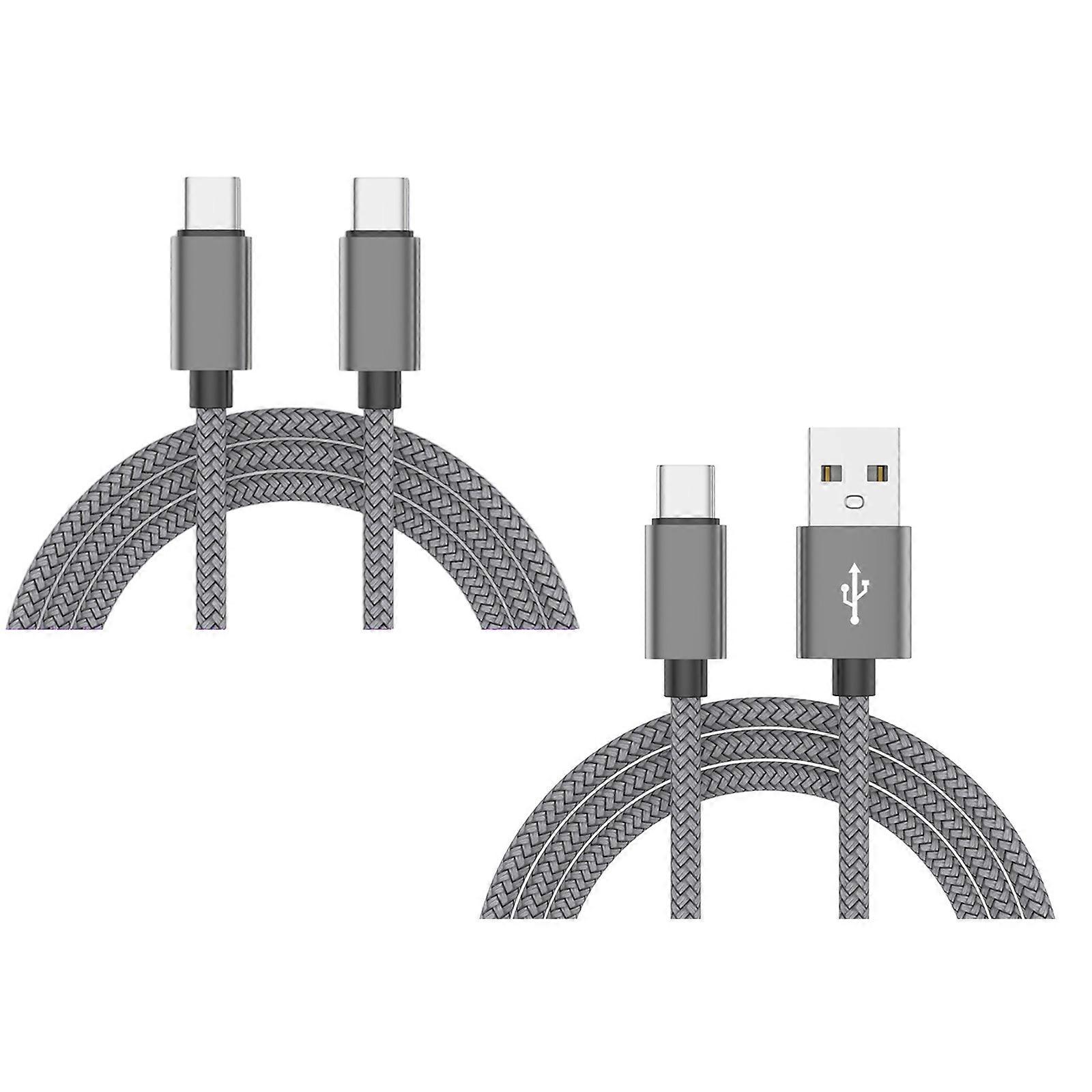2Pcs Nylon Braided Charging Cords USB C To C And A To C 480Mbps Fast Speed Data Sync Tangles Resistant Design Grey