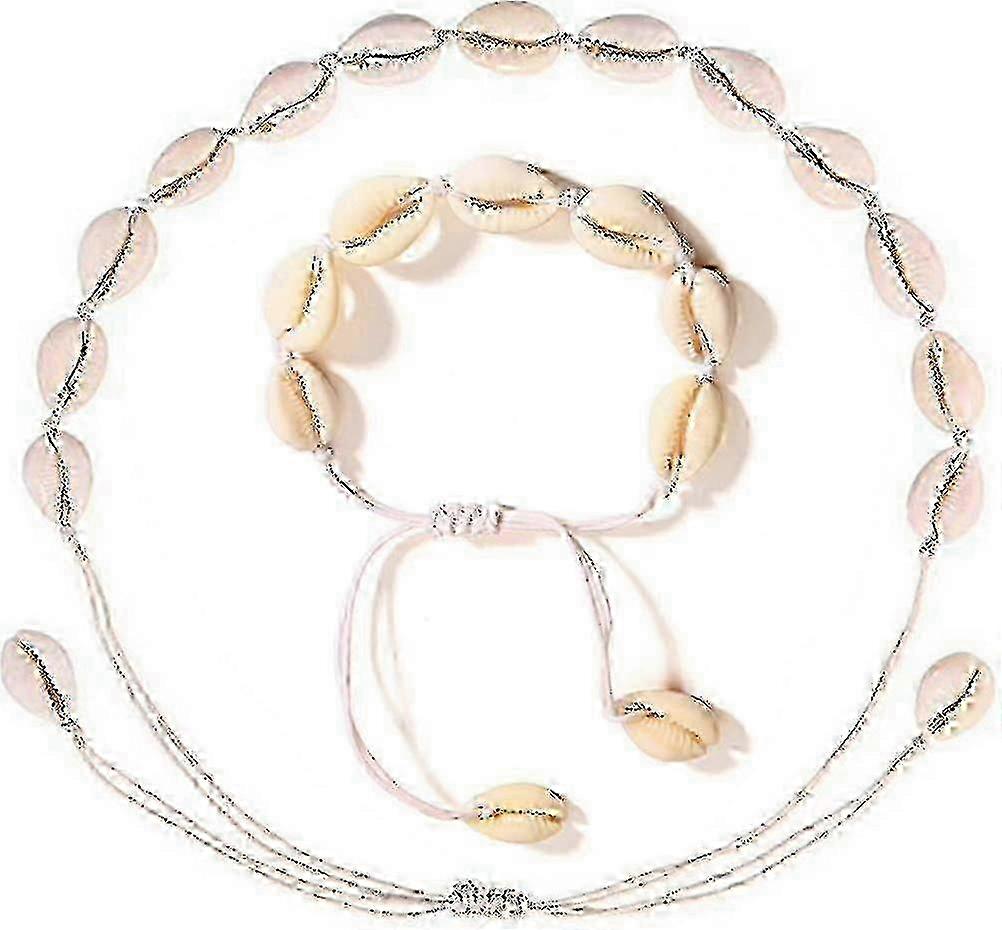 2 Pcs Natural Shell Necklace and Bracelet Set for Women, Boho Beach Choker & Clavicle Chain Jewelry Gift