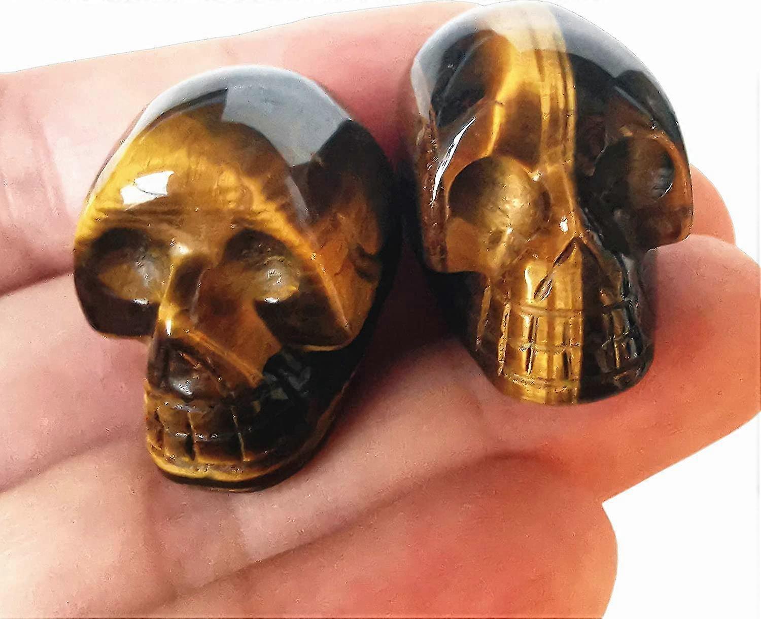 2 Pcs Natural Tiger's Eye Mini Crystal Human Skull Figurines,1 Inch Handcarved Crystals And Healing Stone Room Decor Gemstone